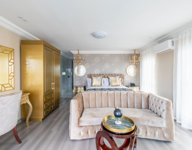 Our rooms are a true reflection of elegance and sophistication, designed to offer you an unforgettable stay. Each room is tastefully furnished with modern amenities, including air conditioning, flat-screen TV with streaming services, complimentary Wi-Fi, and a private balcony overlooking the beach.